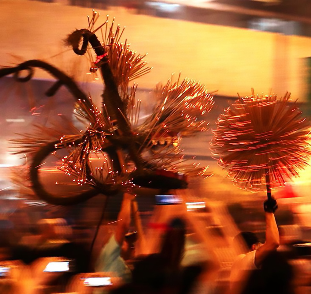 故事要追溯到1880年,当时的大坑还是一个宁静的客家小渔村,突如其来的瘟疫、肆虐的台风,还有村民的家畜被蟒蛇吞食,让村子陷入恐慌。绝望中,一位村民得到神明托梦:打造一条火龙,以此驱邪消灾。于是,村民们连续三晚击鼓鸣锣、燃放鞭炮,舞动火龙,奇迹般地,瘟疫真的消失了!从此,舞火龙成了大坑每年中秋节的传统,为社区祈求平安好运。